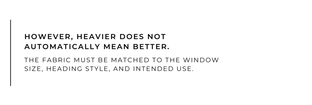 However, heavier does not automatically mean better. The fabric must be matched to the window size, heading style, and intended use. For tall windows or high ceilings, medium to heavy fabrics provide the right amount of visual balance. In smaller rooms or where natural light is essential, lighter fabrics maintain openness without compromising style.