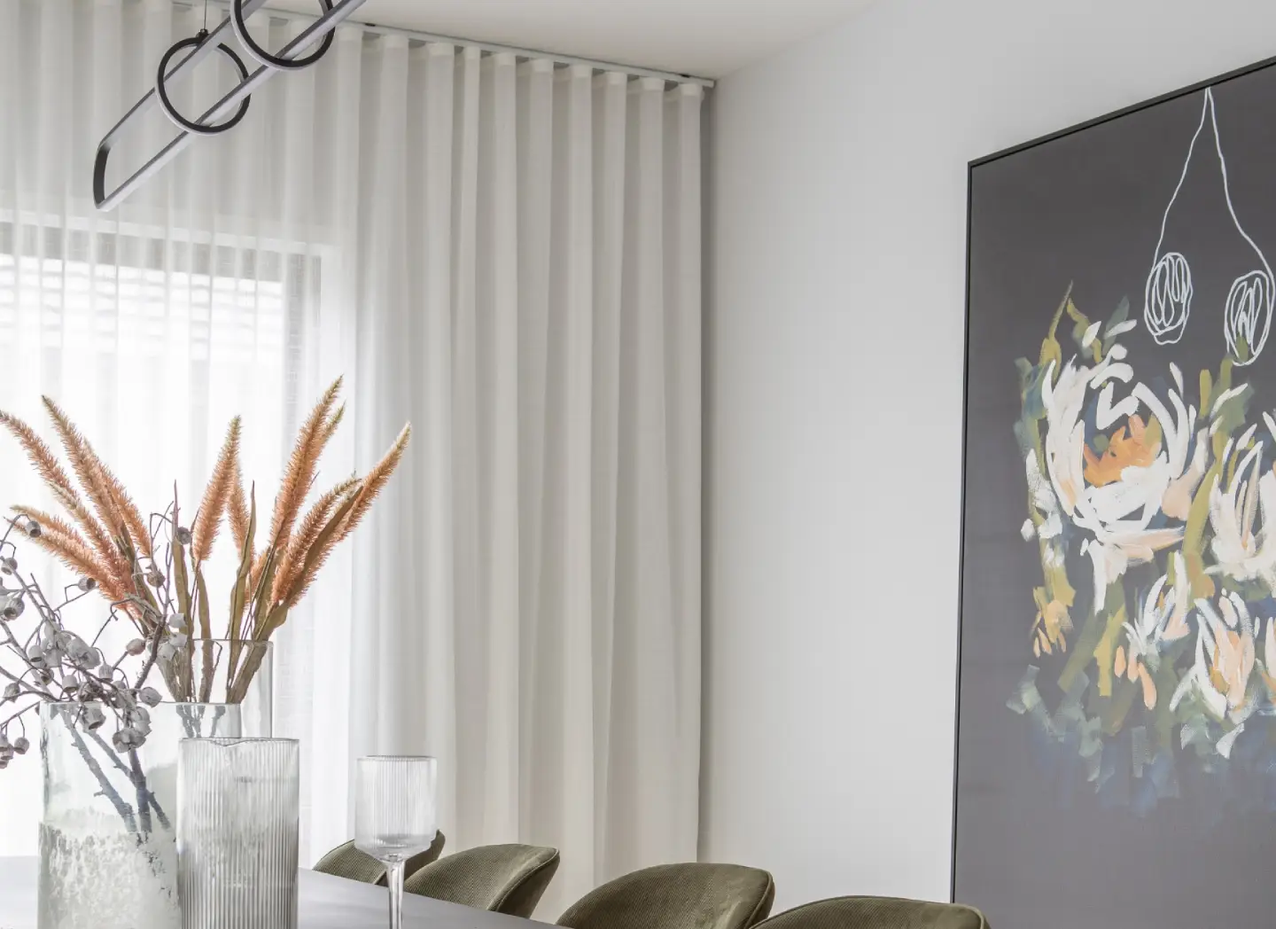 Motorised tracks make it easy to adjust curtains, especially for large or hard-to-reach windows.
