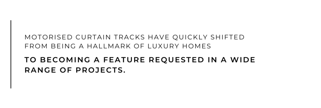 Motorised curtain tracks have quickly shifted from being a hallmark of luxury homes to becoming a feature requested in a wide range of projects. Improvements in technology, the availability of quieter motors, and straightforward compatibility with popular automation systems have broadened their appeal. They are now seen not only as a premium option but also as a practical solution for modern living and working environments.